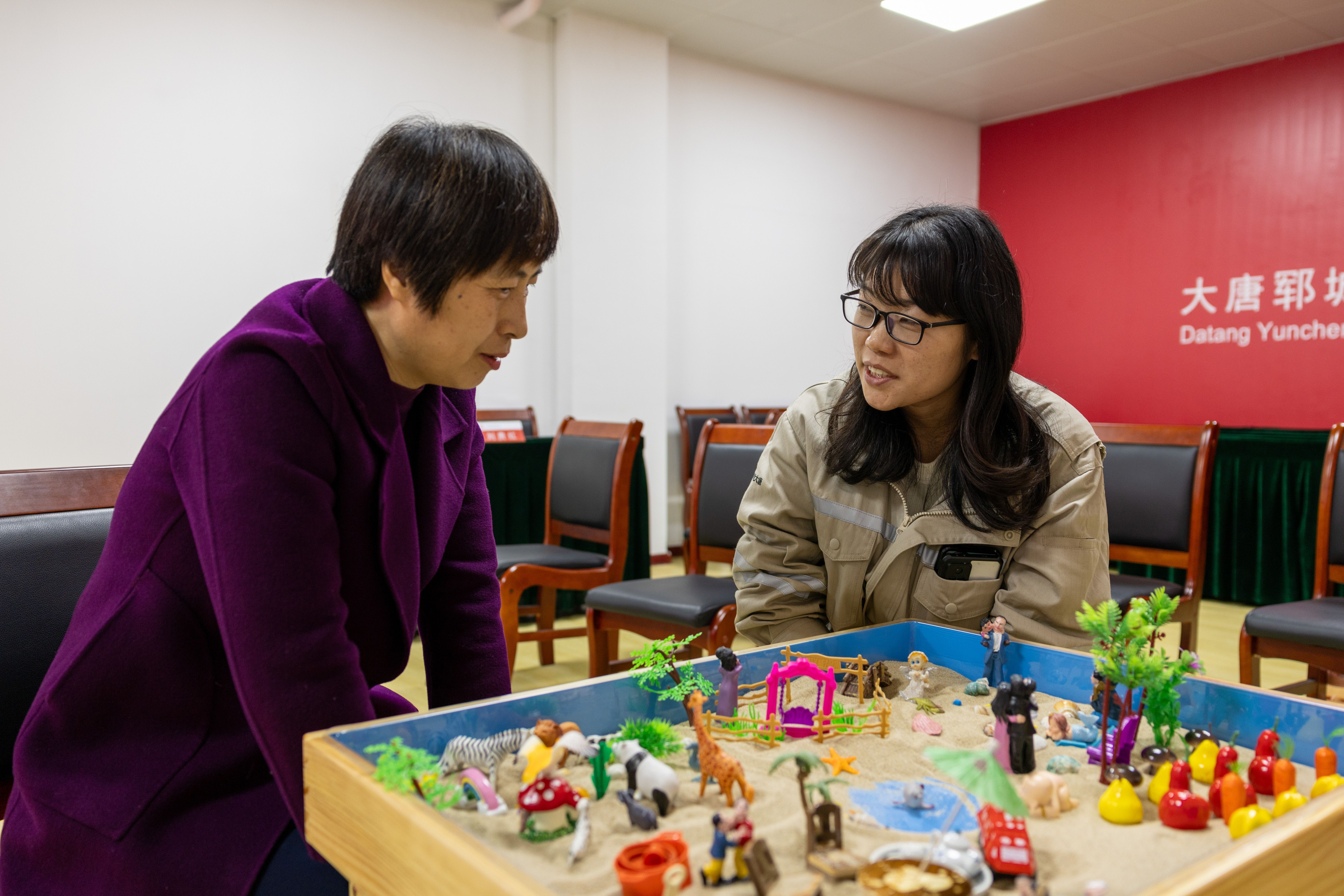 运动中,,,,,,,,心理咨询师以一个个松开的小要领举行“破冰”,,,,,,,,指导各人举行正念减压训练和冥想训练,,,,,,,,让职工们陶醉在清静之中。。。。。随后,,,,,,,,职工们围坐在沙盘周围,,,,,,,,详细相识沙盘游戏及运动规则,,,,,,,,依次挑选心仪的沙具安排在沙盘中,,,,,,,,分享各自作品背后的故事,,,,,,,,并通过心理咨询师的解读,,,,,,,,资助宽大职工纾解压力、翻开心扉、发明自己,,,,,,,,实现心灵上的交流与碰撞。。。。。